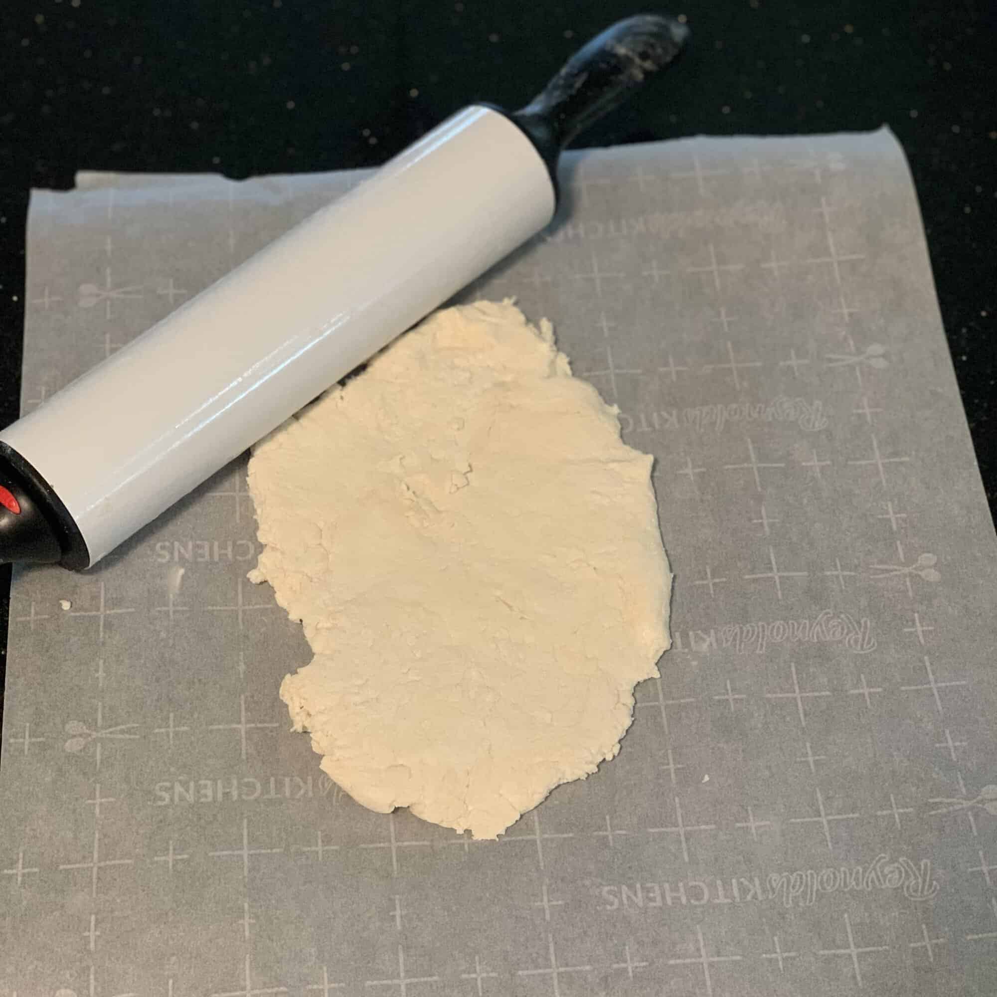 - Roll the dough out. (I roll it out in parchment paper.)