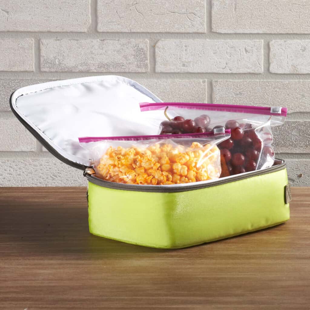Utensils and Napkins: Store reusable utensils and napkins in a slider bag. This keeps them clean and contained until lunchtime.