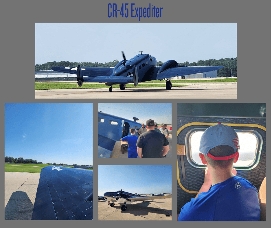 My son and husband had the opportunity to ride in the C-45 together. Random fun fact (that really scared me though) is that they have glass windows on the belly of the plane (floor) so you can see straight down to the ground! They received their pre-flight instructions, got buckled in, and away they went!