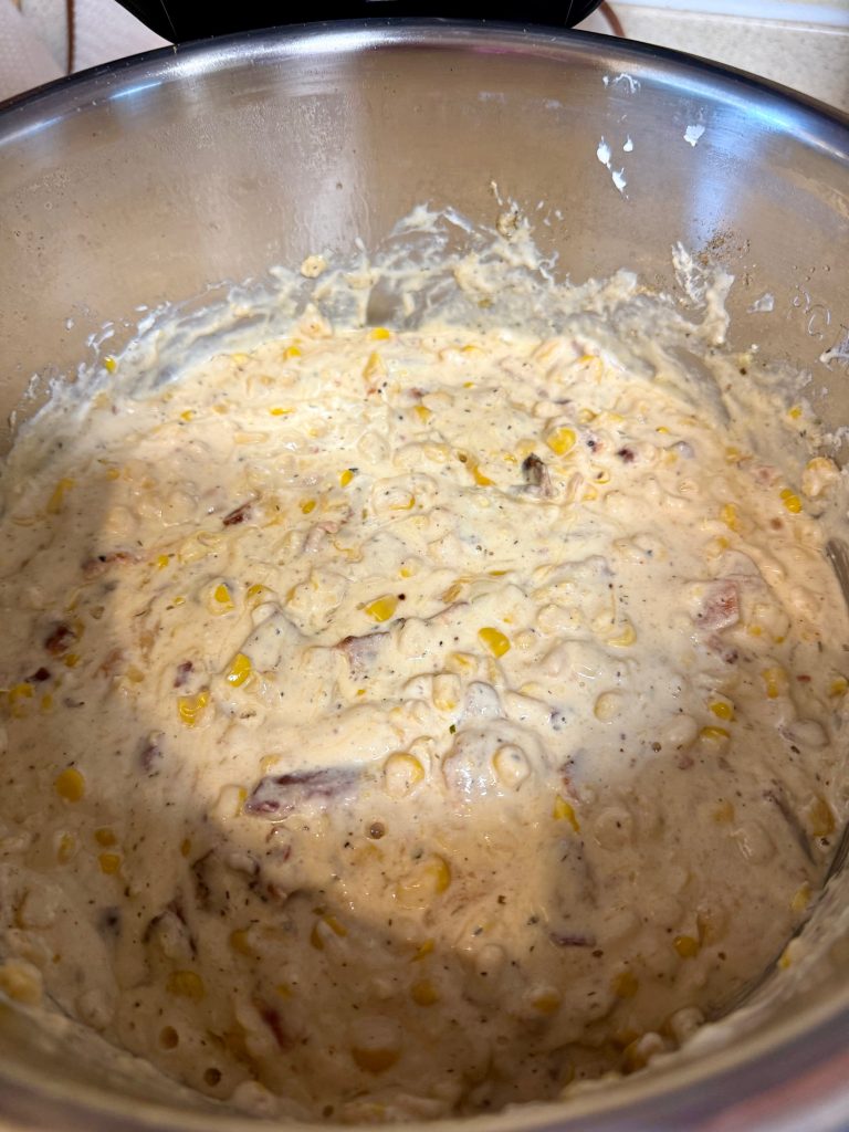 - Add creamed corn.