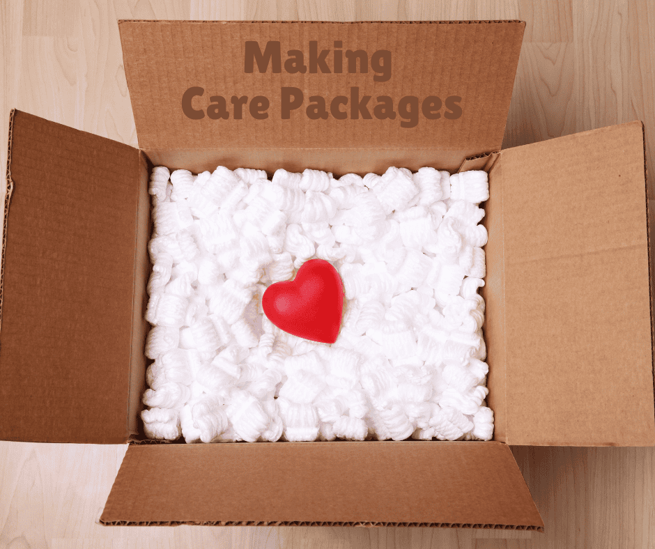 Here is a list of possible items to get you started on filling you box. Also, I use hard candy and slim gum packs to help fill empty spaces too! I use every inch of space and get tons of goodies in the USPS Large Flat-Rate Priority Mail Boxes.