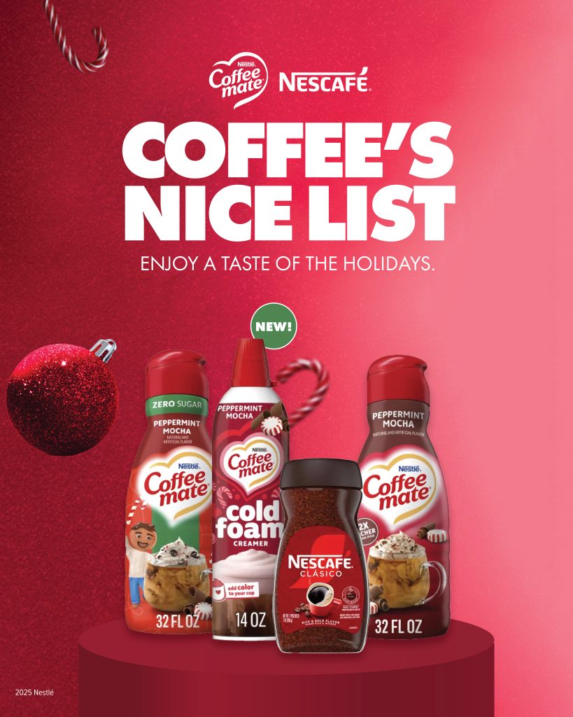 This season, make sure your coffee routine is on the Nice List! Stock up and save on Nescafé Clásico, Coffee mate Peppermint Mocha Creamer, Zero Sugar Creamer, and NEW Cold Foam Peppermint Mocha Creamer, all available now at your local Commissary. Because no matter where you’re stationed, a little taste of home (and peppermint) goes a long way.