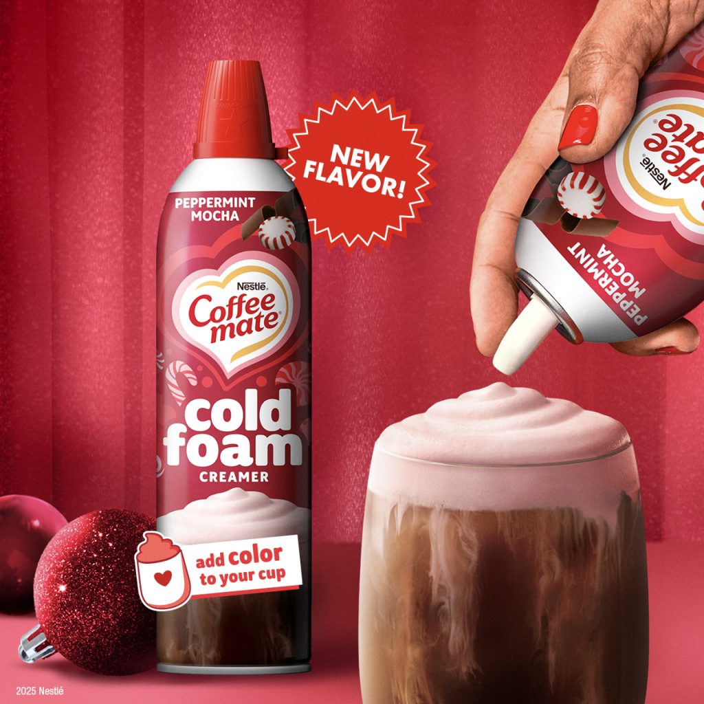 Looking for something new to top your coffee? Try the NEW Coffee mate Peppermint Mocha Cold Foam Creamer! It’s smooth, creamy, and perfectly frothy, the easiest way to add that barista-style finish right at home. No special equipment needed. Just pour, sip, and enjoy!