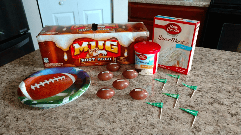 Go Team, GO! Who are you “ROOT-ing” for during the Big Game? Whether you like the teams, a good game, or the commercials (me!), you will probably be feasting all day long. Make sure that you don’t forget a yummy dessert! Consider trying out this amazingly easy & delicious recipe for Mug Root Beer Cupcakes! This super easy, two-ingredient cupcake recipe will help get your Big Game Party going when you decorate them in your favorite football themed toppers! With just a hint of the Mug Root Beer flavor in the cupcakes, it will get you ready to cheer and ROOT for your favorite team!