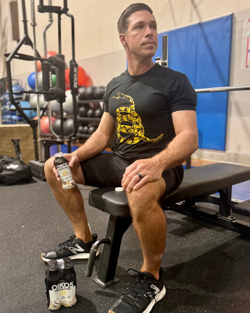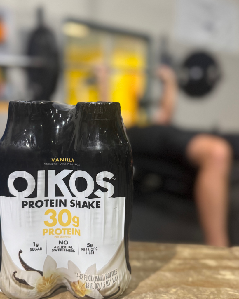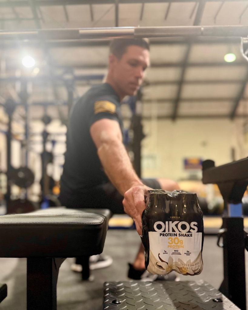 I like to get past the first half before taking a break. After the sixth set, it’s time to replenish nutrients — and what better way to get the second half going than with an OIKOS Protein Shake? I always have my cooler on hand to get that refreshing, smooth deliciousness into my system to power through the second half of the WOD.