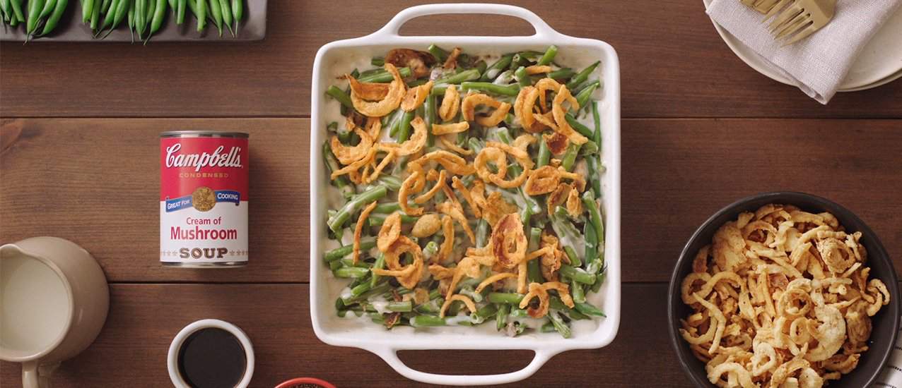 Campbell’s Cream of Mushroom Soup and French's French Fried Onions for the holiday favorite - the infamous Green Bean Casserole