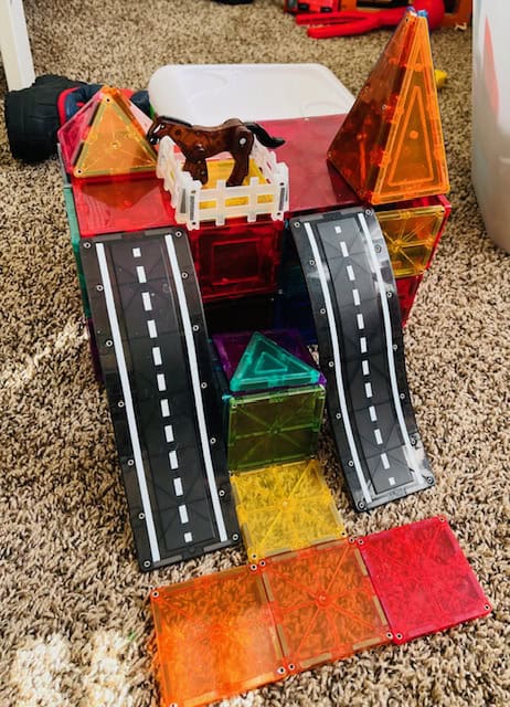 Finally, here's another favorite toy in this home: MAGNA-TILES. There are so many types of magnetic blocks on the market, but I can tell you that MAGNA-TILES have held up for at least three PCS moves and are always a favorite. They offer a variety of sets; they also are the toys that we ensure immediate access to because our boys will play with them for hours on end. They also are a lot of fun to take outside and stick to a metal garage door when the weather is nicer!