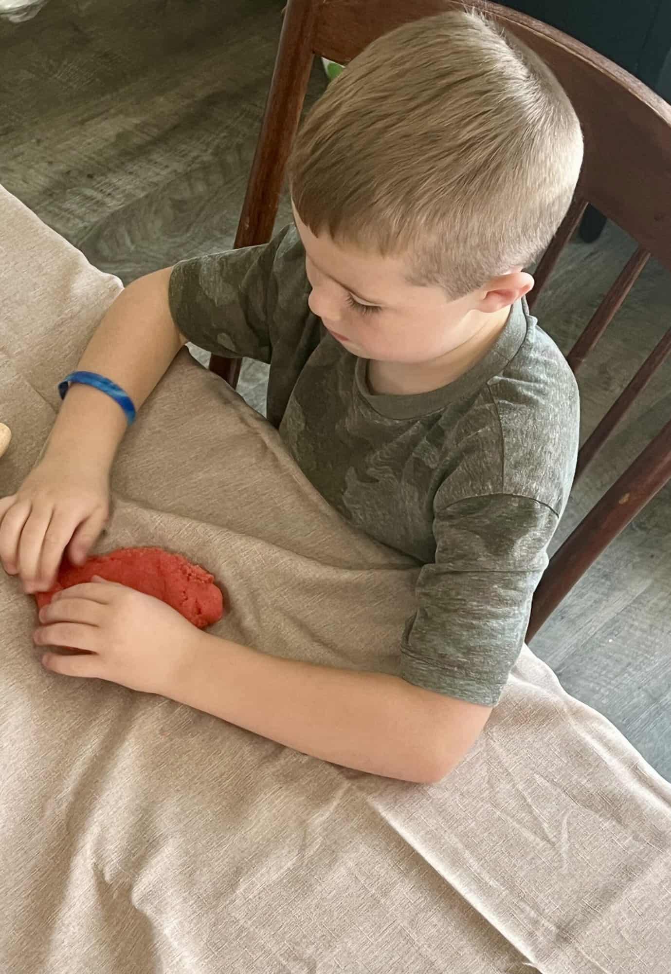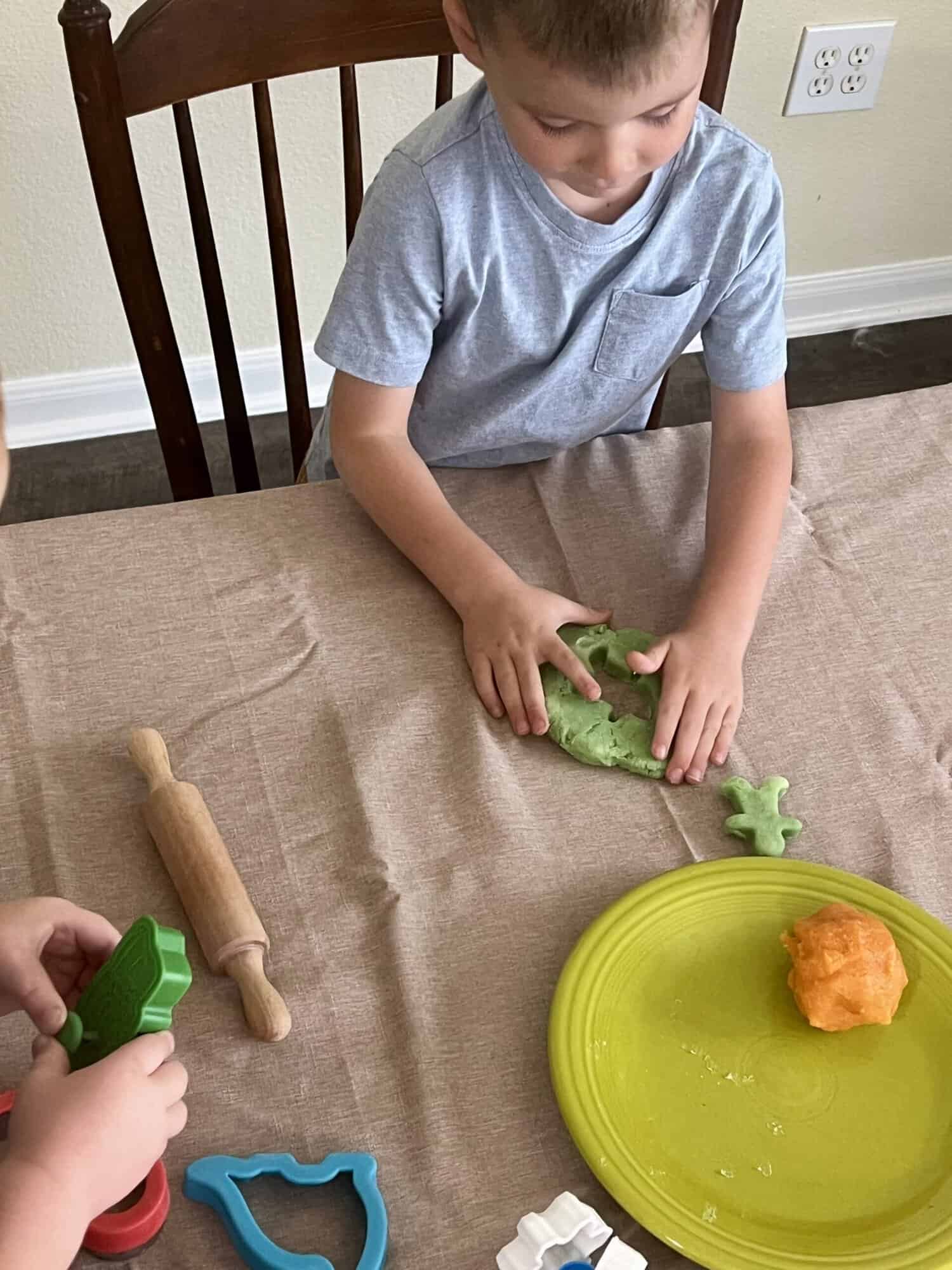 We had a blast combining these with our favorite dough tools. I also made sure to put down a tablecloth, but this play dough stayed together really well and wasn’t very messy!