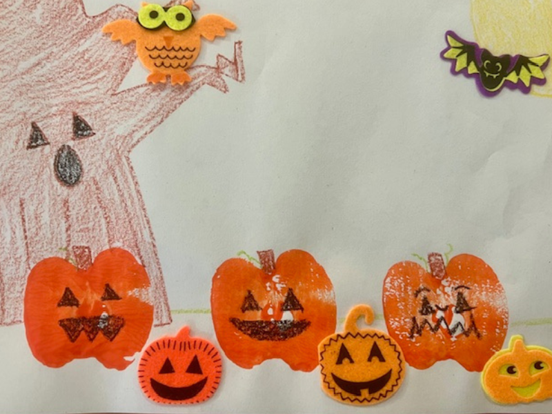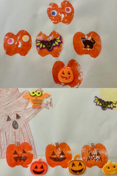 My boys had a lot of fun with this one. I loved that it could be easily customized to be themed for fall or for Halloween. My boys opted to utilize a Halloween theme for this one, and they had a lot of fun adding the felt stickers into their design. This craft allowed them to have independence and to really use their imagination.