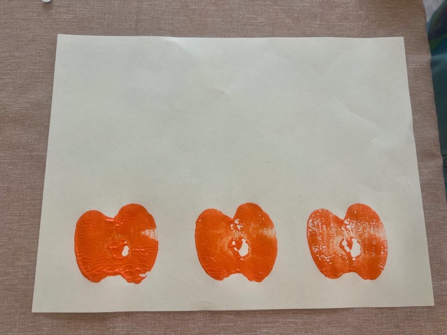 This craft was so fun. We were painting with apples! This one was a lot of fun and very low stress.