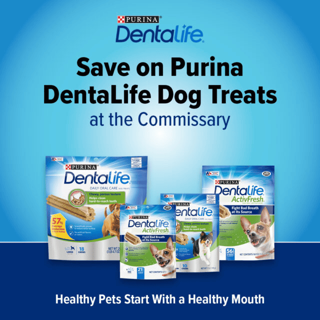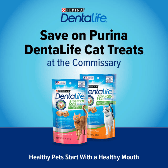 Get your Dentalife Cat and Dentalife Dog treats at your local Commissary!
