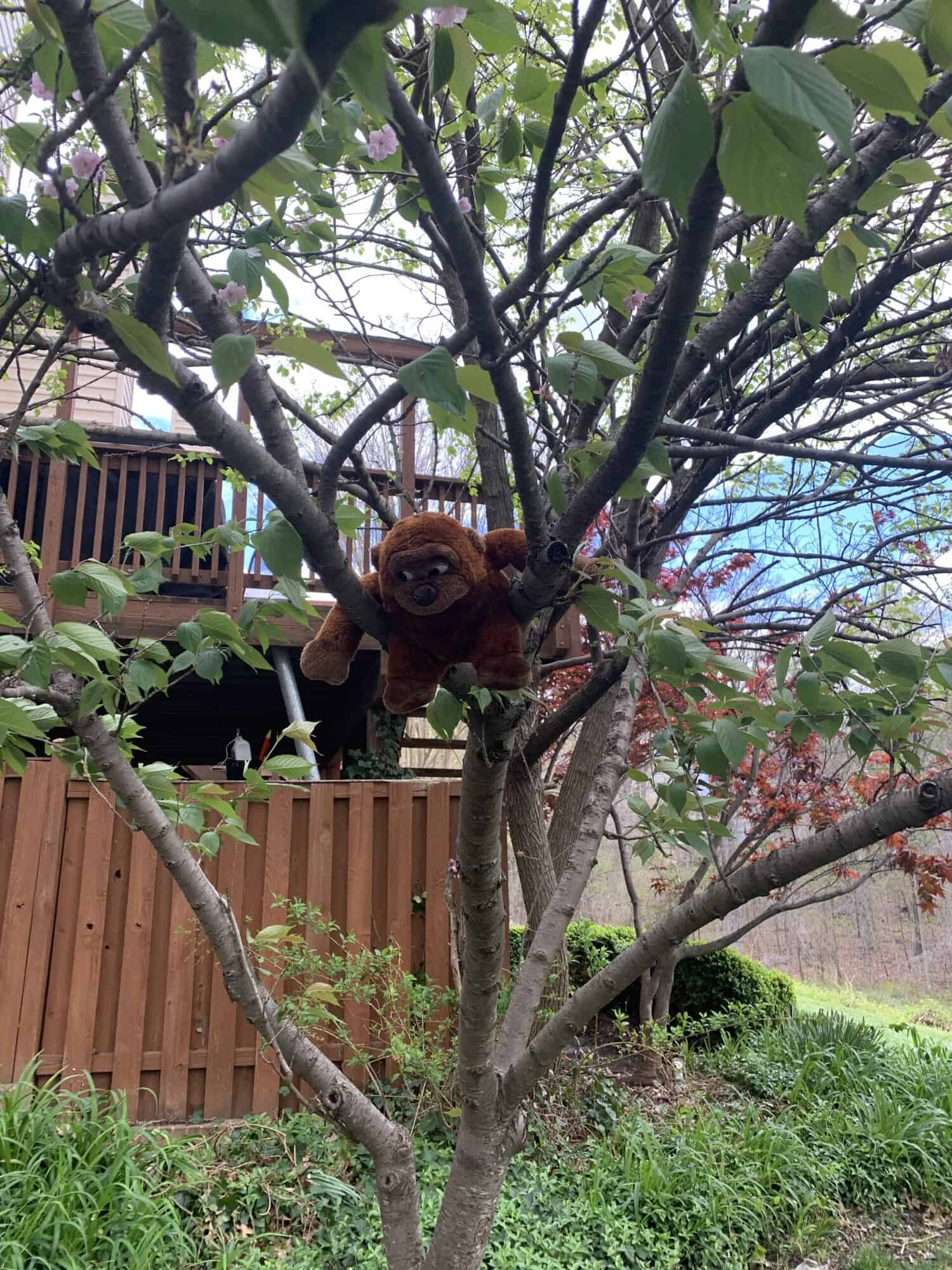 I took my kids stuffed animals and placed them (some hidden) all around our yard.