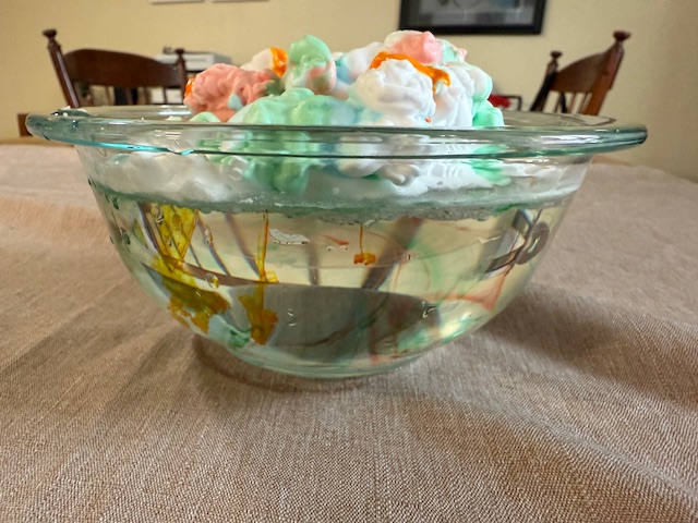 - Drop the Food Coloring mixture onto your cloud.