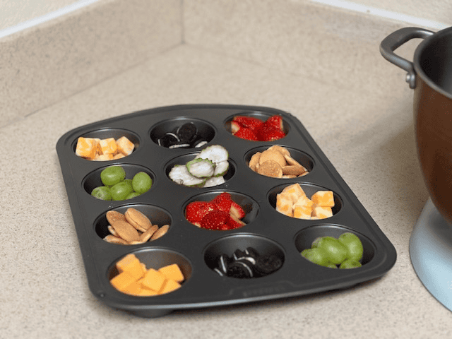 For those hungry kids just home from school and tired of the same old things, the snack tray will be your best friend. I pick a bunch of random things that I know my kids enjoy and I utilized either a muffin tin or a portable snack box, aka the "Snackle Box”. This option is perfect for busy families on the go and is great if you have after-school activities and need to satisfy a group of hungry kids! We’ve had lots of fun adventures this summer using the Snackle Box! It is perfect for trips to the park or during a sibling’s sporting event. Also for a day out to the zoo or your favorite amusement park! You can also take the muffin tin outside but it’s a bit trickier since it’s open! However, another mom friend recently shared her trick for keeping bugs out and snacks in using one of my kids’ favorite toys…The MAGNA-TILE! Grab twelve of the squares and this will allow you to cover up each snack area to keep bugs out and snacks in! It works great.