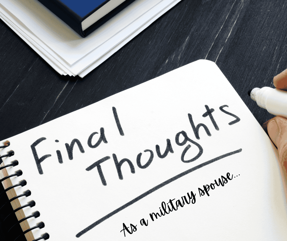 This advice may seem impractical, but it's an essential tip to remember. Panic leads to confusion, and confusion is the last thing you want or need before their departure. Most spouses get orders months in advance, so you will have plenty of time to let the news sink in and start preparing. Remember the importance of self-care!!! It is so crucial to make sure you are taking care of yourself too!