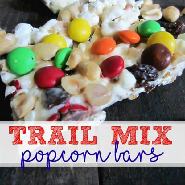These Trail Mix Popcorn Bars are so easy to make, taste better than any box kind, and are perfect for your kid's lunchbox or even your spouse's rucksack!