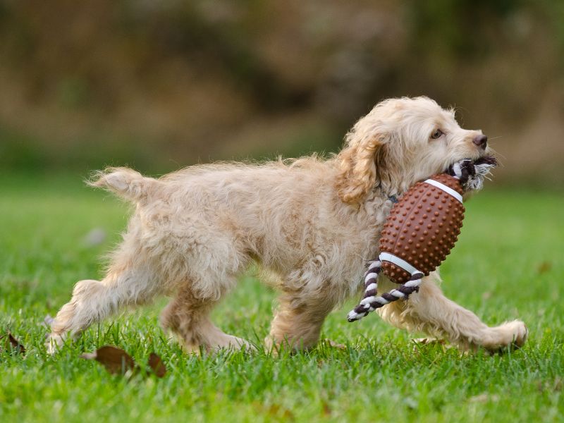 - Bring out the soft footballs or plush toys and let your pup have their own “practice drills.”